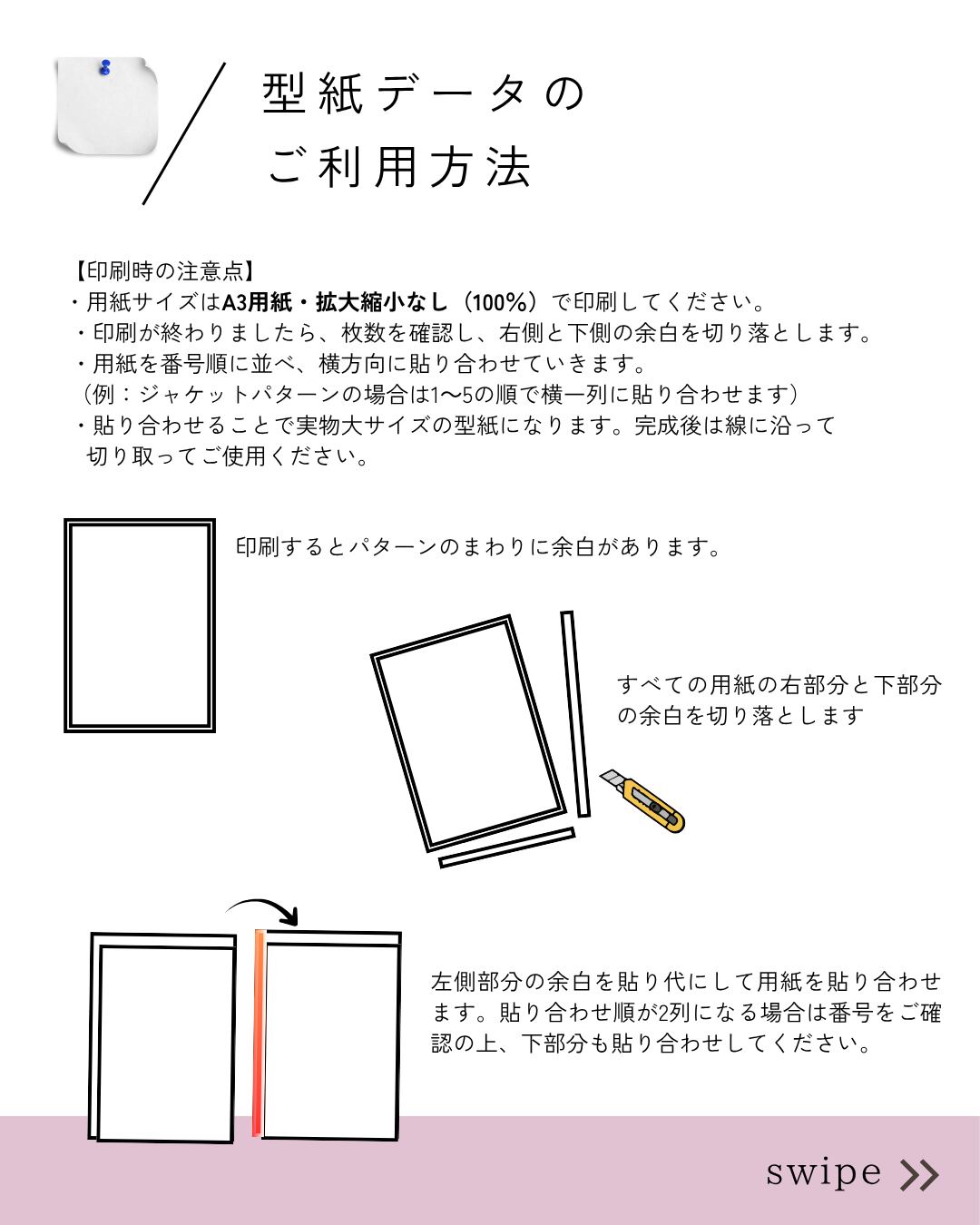 印刷・貼り合わせを行うことで、実物大の型紙としてそのままご使用いただけます。