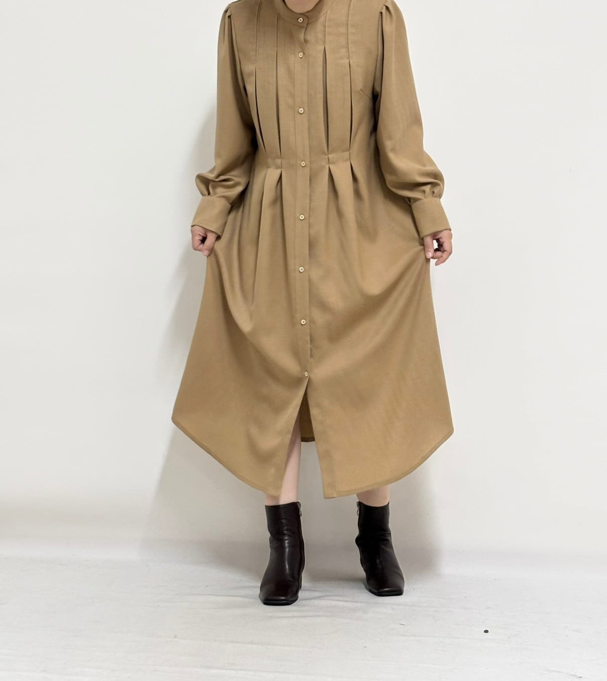 【YK6070】<sedo>スタンドカラーのデザインタックワンピース Sサイズ