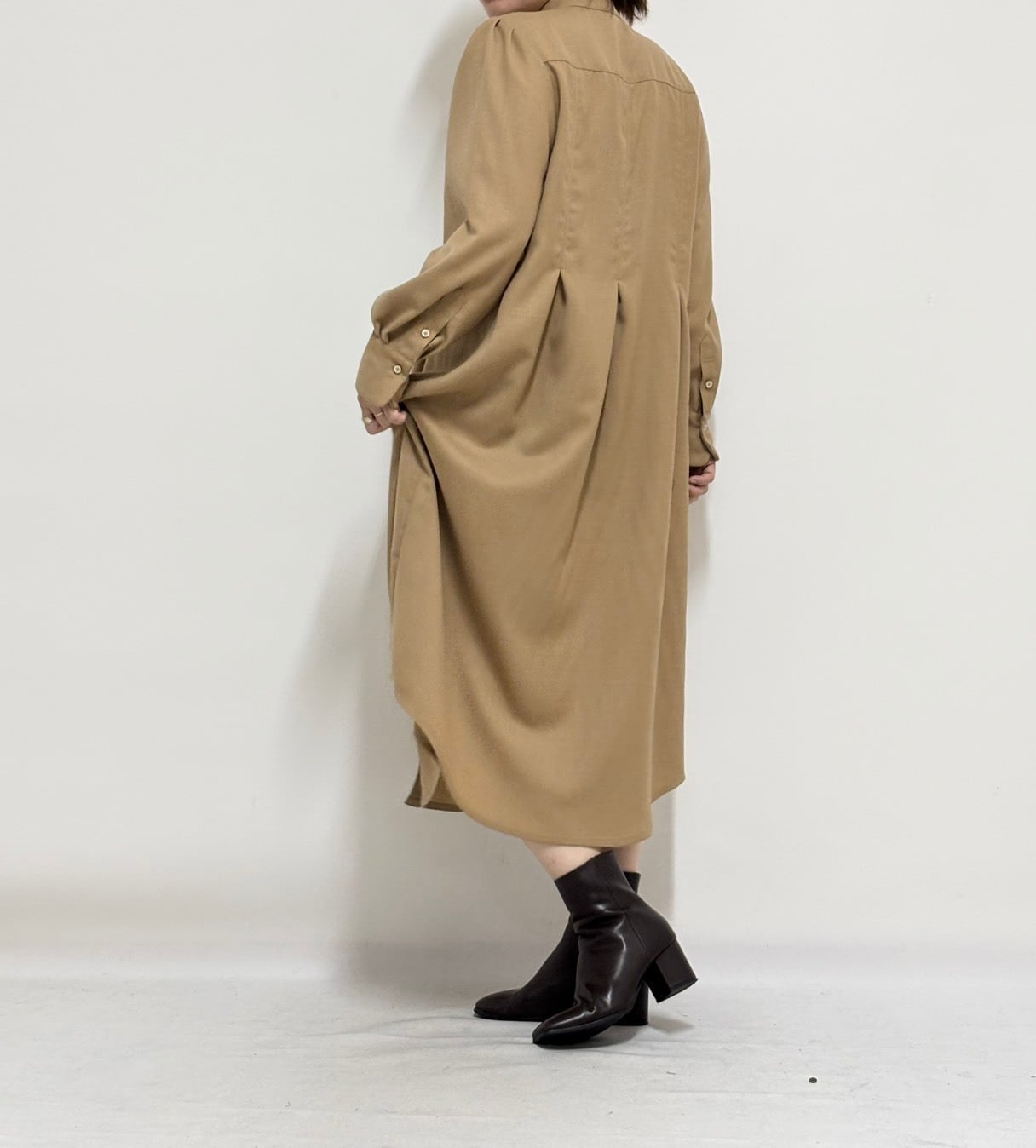 袖山と袖口のタックで、ふんわりとしたシルエットの袖も女性らしさを感じさせます。
