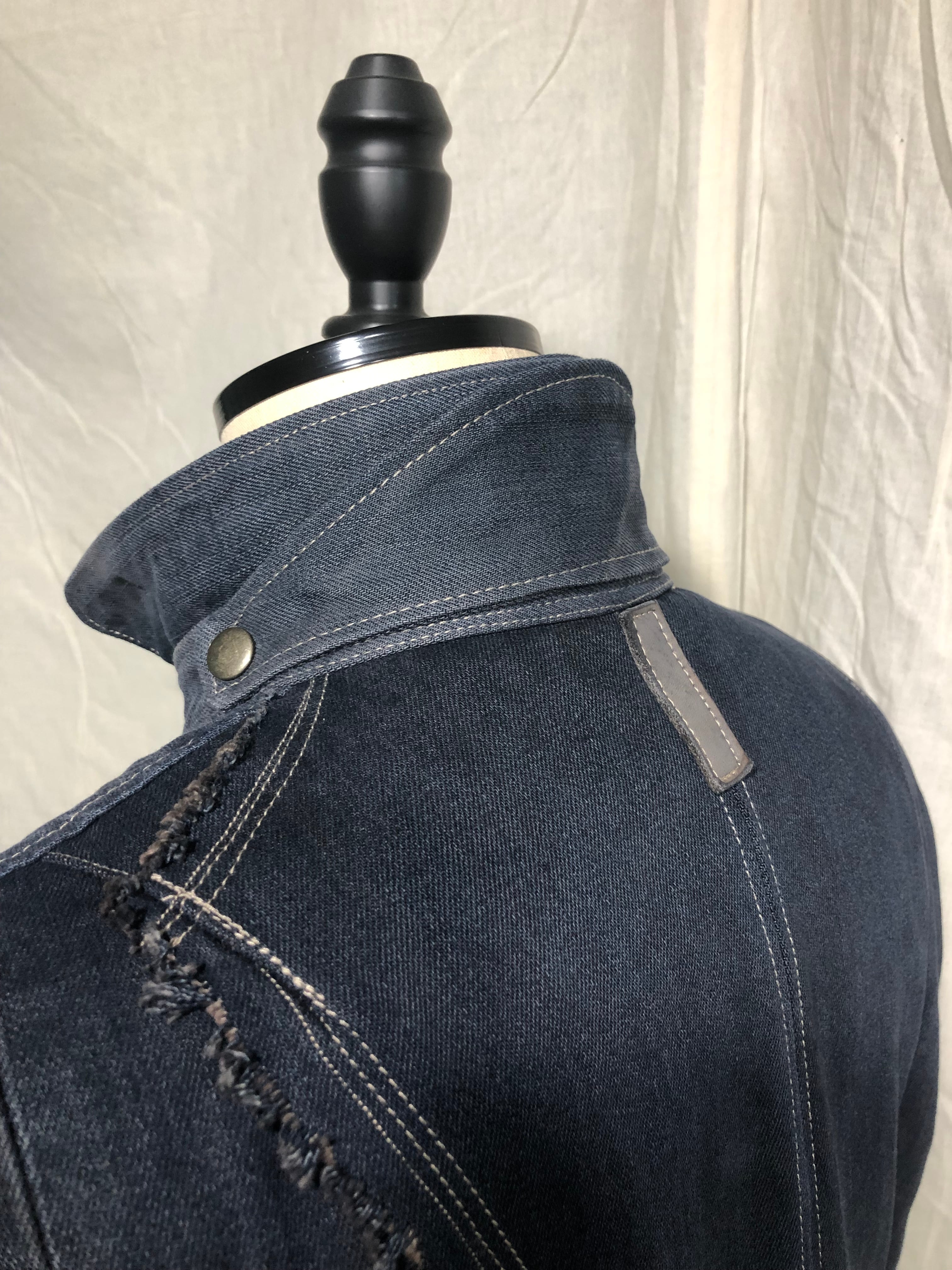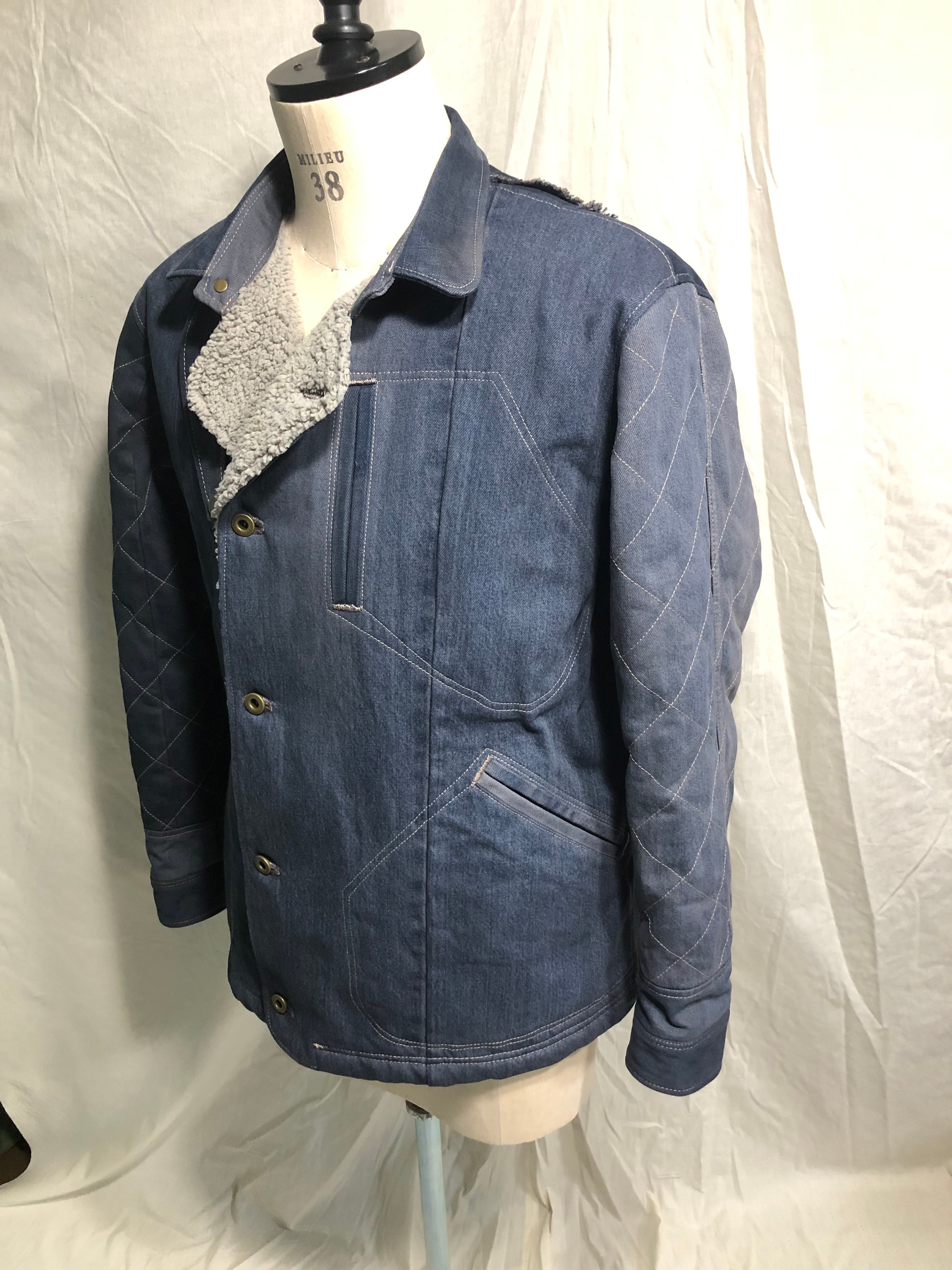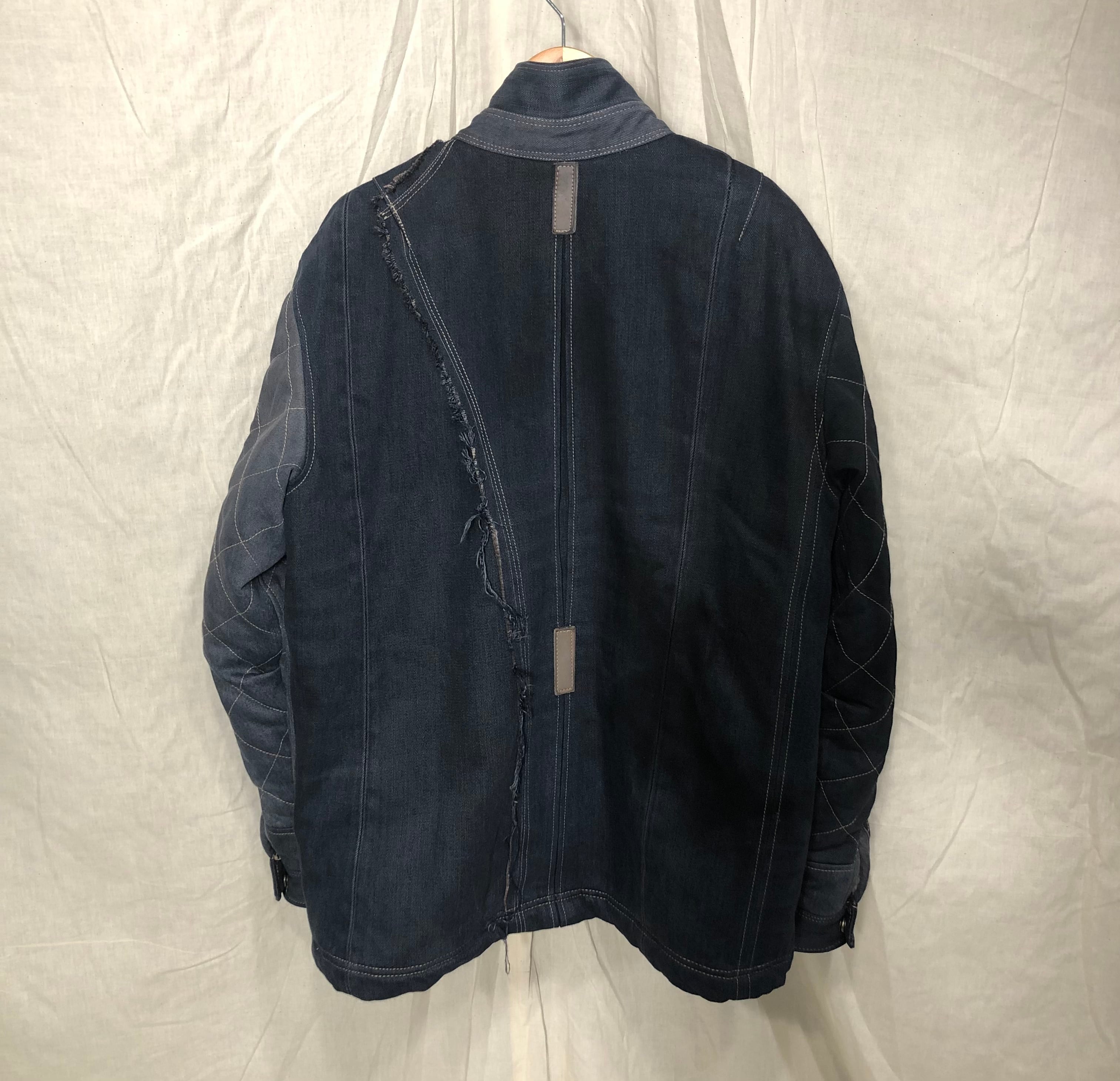 ジーンズ5本のアップサイクルで出来たジャケットです。
